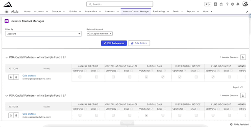 - Automatically filters and displays relevant investor contacts, so you see exactly who matters for each record, and their communication preferences.