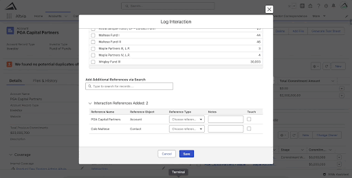 - Available as its own CRM tab or embedded directly on Account, Contact, Entity, and Investor pages.